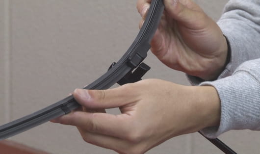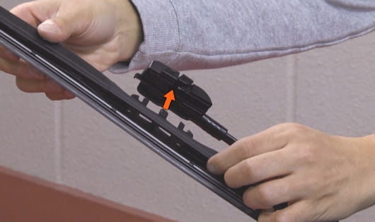 接頭底部溝槽對準雨刷中間卡榫結合即完成。