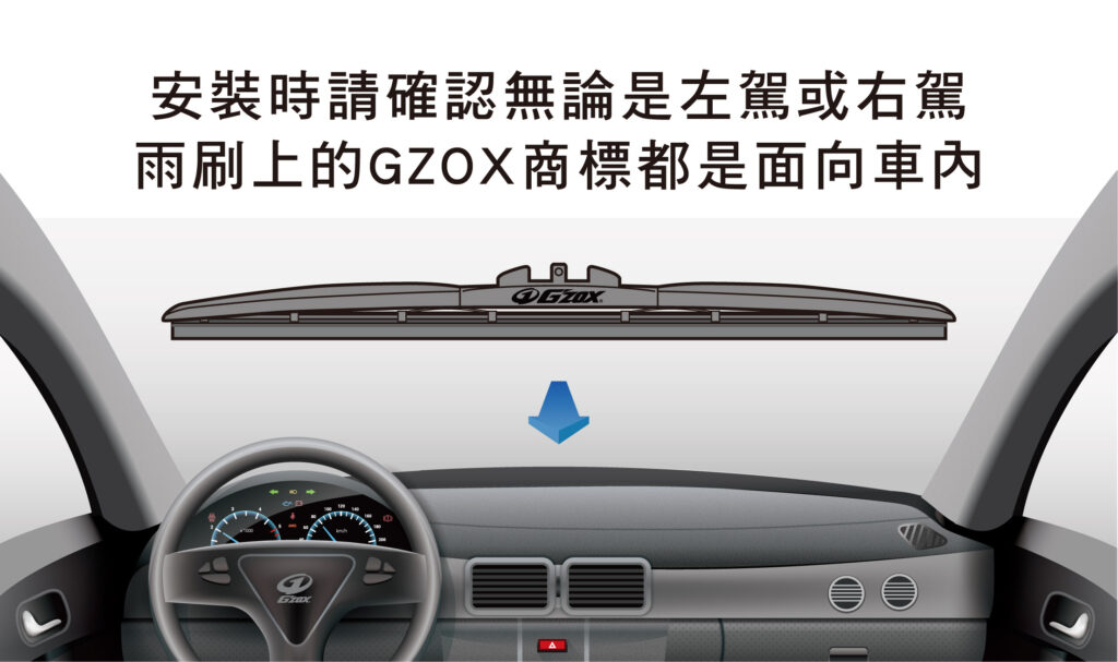 無論左駕或右駕,雨刷上的GZOX商標都是面向車內
